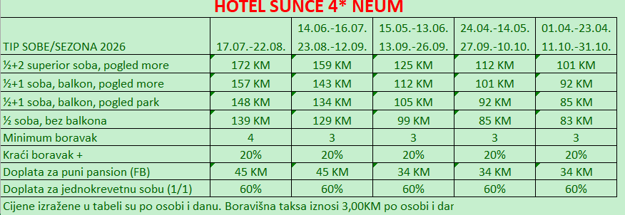 – Obavezno medjunarodno putno zdravstveno osiguranje 15,00 KM po osobi. Osobe preko 60 godina plaćaju 30,00 KM,