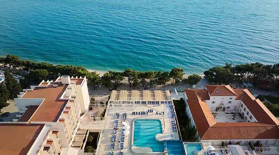 Bluesun Hotel Alga 4* se nalazi u mjestu Tučepi, direktno uz šljunčanu plažu, na samoj obali — idealno za one koji žele ljeto provedeno uz more i more u nekoliko koraka.