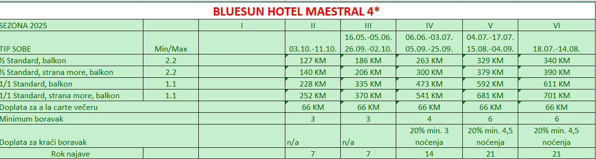 *10 % ZA SVE REZERVACIJE NAPRAVLJENE DO 28.02.2025. ZA PERIOD OD 01.04.-05.06./ 12.09.-31.10. S UPLATOM OD 50% DO 10.03. ( I TO 30% AVANSA