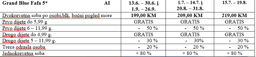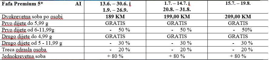 - Doplata za jednokrevetnu sobu – 200,00 KM