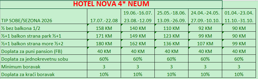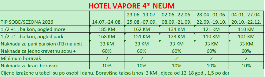 Plaćanja: 30% nakon napravljene rezervacije, ostatak najkasnije 15 dana pred ulazak u hotel.